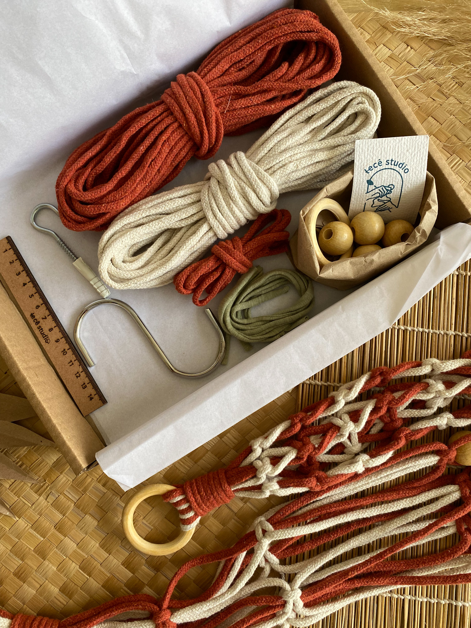 Kit de Macramê Maria Bonita é o nosso primeiro kit de faça você mesmo. O intuito é despertar o artesão e artesã que existe dentro de você, ou presentear aquela pessoa especial que é apaixonada por manualidades. O Kit acompanha todos os insumos para a confecção de um suporte de plantas, incluindo um livreto explicativo do passo a passo da peça e o link para um tutorial em vídeo. Descrição dos materiais do KIT: cordões nas cores cru e terracota, uma argola de madeira, quatro bolinha de madeira, um gabarito de nós, um Gancho S, uma bucha de alvenaria com parafuso de gancho e livreto de instruções.