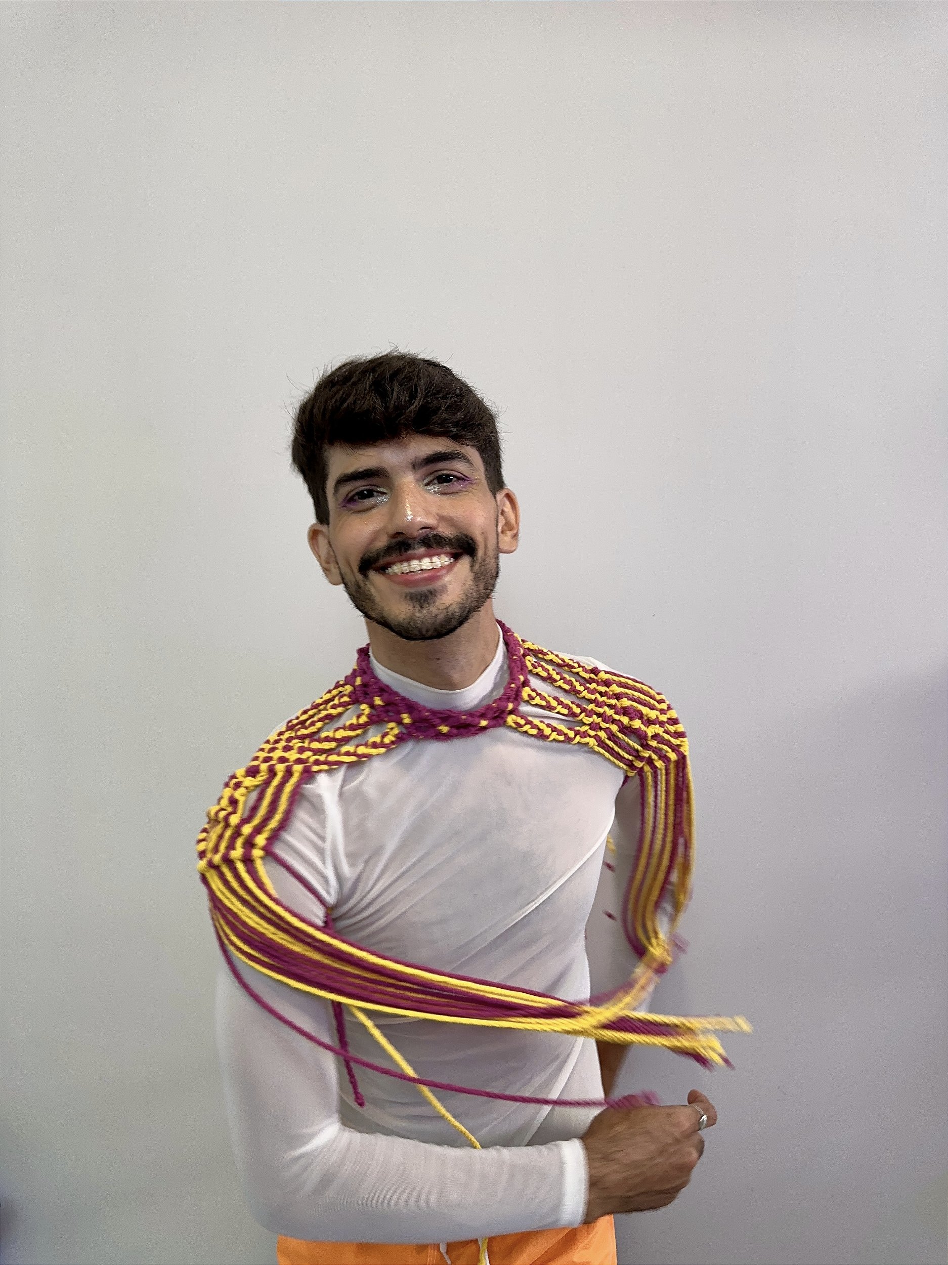 Ombreira Folia em macramê confeccionada em barbante de algodão. nas cores amarelo e papoula.